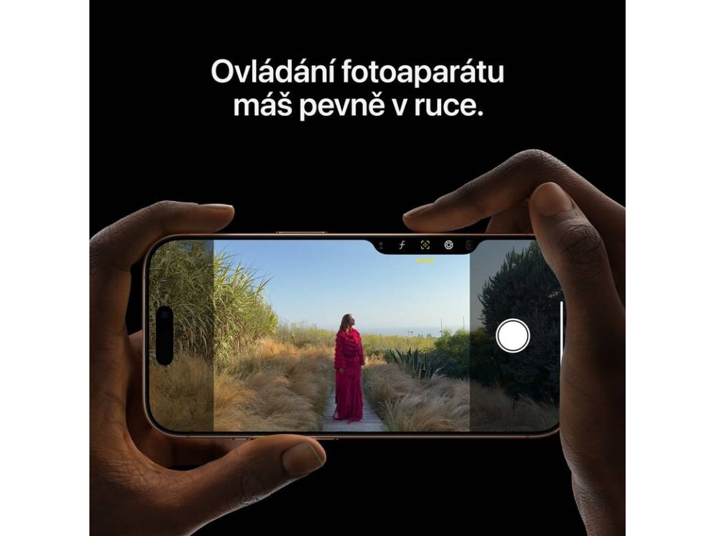 iPhone 16 Pro přidává do profesionální fotosoustavy druhý 48MP fotoaparát. Nový 48MP ultraširokoúhlý fotoaparát má automatické zaostřování a vyspělejší quad pixelový snímač pro 48MP ProRAW a HEIF fotky se supervysokým rozlišením. Takže s ním pořídíš neskutečně jemně vykreslené makrosnímky a velkolepé širokoúhlé záběry.Větší zoom? Jasně. Teleobjektivem s ohniskem 120 mm a 5× přiblížením teď můžeš fotit na obou Pro modelech. Z větší dálky tak uděláš ostřejší přiblížené snímky. Mít na výběr z tolika možností kompozice, to je jako mít v kapse sedm profesionálních objektivů. Všude, kam vyrazíš.