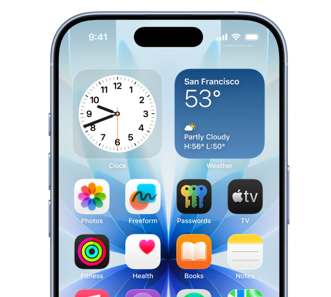 Mobil využívá iOS 26, jenž přináší nový vizuální zážitek s Liquid Glass, kde se pozadí a aplikace dynamicky prolínají světlem a odrazy. Zamknutá obrazovka ožívá 3D efekty podle fotky na tapetě a zobrazení hodin se přizpůsobuje obsahu. Novinky zahrnují i Prověřování hovorů, které filtruje neznámé volající, a další šikovné funkce.