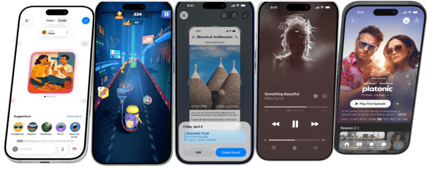 Apple Intelligence umožňuje vyhledávat a pracovat s obsahem na obrazovce, automaticky překládat zprávy i tlumočit hovory. Funkce Vyčistit pak odstraňuje rušivé prvky z fotek při zachování jejich původního vzhledu, zatímco Genmoji umožňuje vytvářet personalizované obrázky přímo z klávesnice a psací nástroje pomáhají s korekturami, přepisováním i rychlým shrnutím textů.