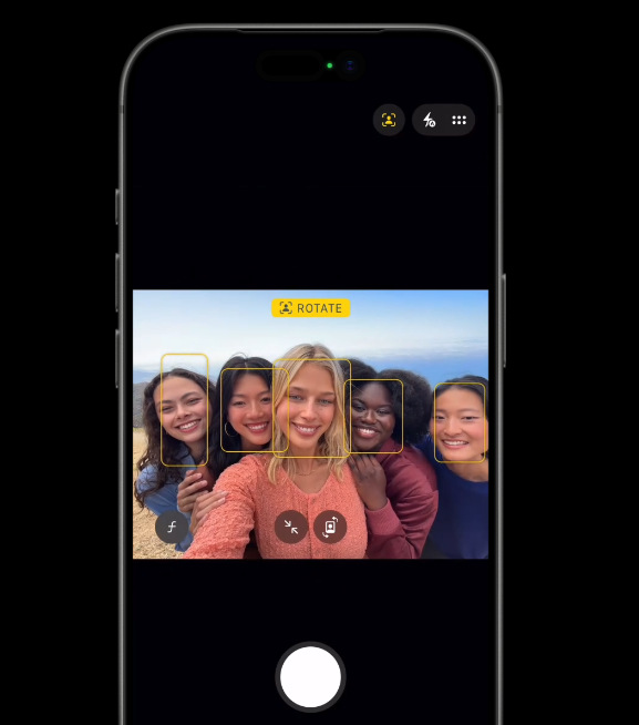 Nová čtvercová 18Mpx kamera s funkcí Center Stage automaticky upravuje záběr a podporuje zoom i otočení pro ještě větší volnost kompozice při tvorbě selfies.